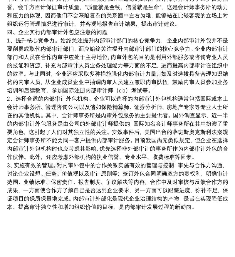淺談企業(yè)內(nèi)部審計(jì)外部化