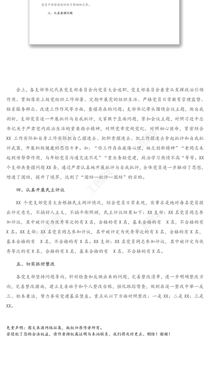 工圖網(wǎng)提供各支部組織生活會(huì)和民主評(píng)議黨員開展情況報(bào)告供會(huì)員免費(fèi)下載。更多精彩黨課PPT素材,盡在工圖網(wǎng)。