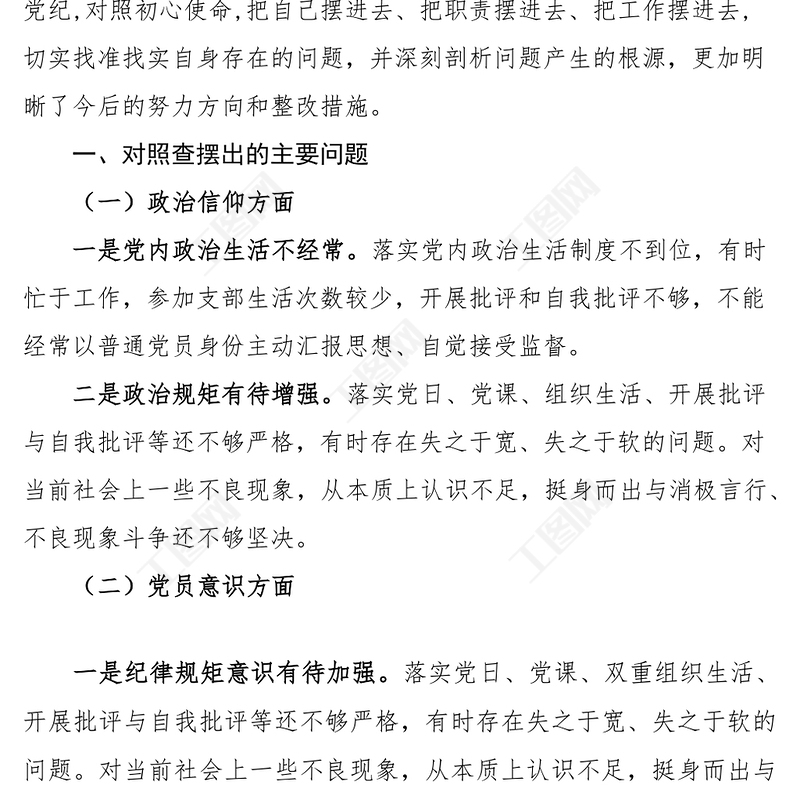 工圖網(wǎng)提供2022年度組織生活會個人對照檢查材料2023年初信仰黨員意識理論學(xué)習(xí)能力本領(lǐng)作用發(fā)揮紀(jì)律作風(fēng)等供會員免費下載。更多精彩黨課PPT素材,盡在工圖網(wǎng)。