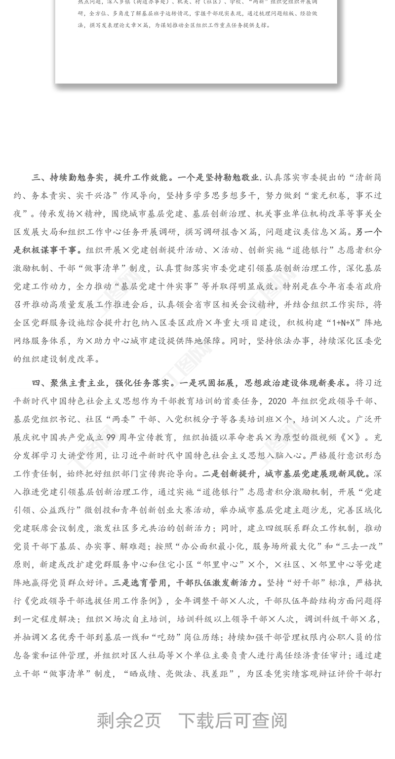 2020年度組織部長述職述廉述學(xué)報(bào)告