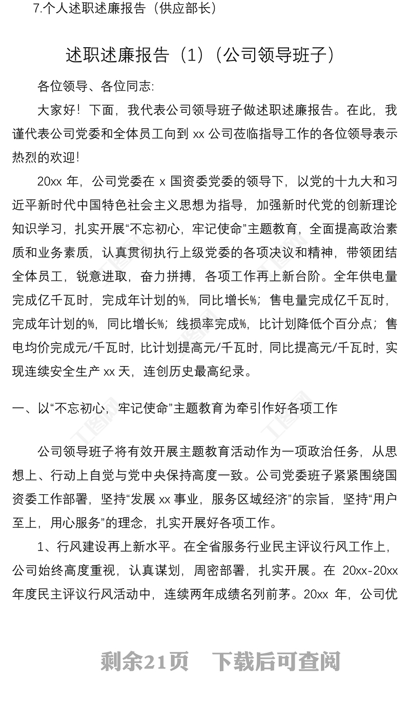 工圖網提供2021國企領導班子領導干部述職述廉報告匯編7篇供會員免費下載。更多精彩黨課PPT素材,盡在工圖網。