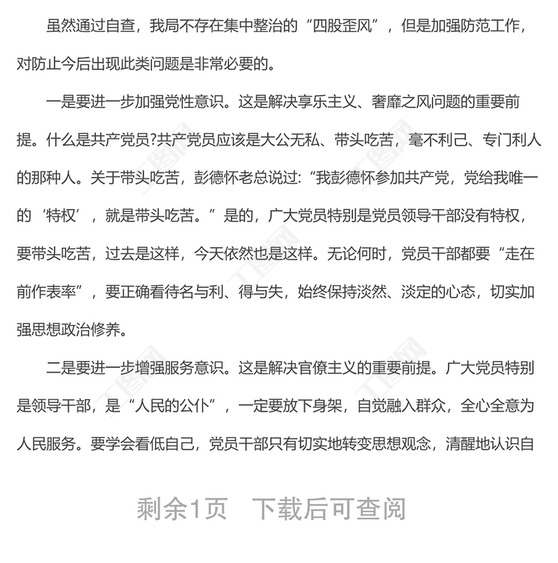工圖網提供整治四風問題自查自糾報告(二)供會員免費下載。更多精彩黨課PPT素材,盡在工圖網。