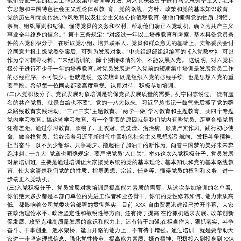 首頁(yè) > WORD文檔 > 領(lǐng)導(dǎo)講話 > 2021在20xx年上半年入黨積極分子黨員發(fā)展對(duì)象培訓(xùn)班上講話兩篇.DOCX 【圖片、文字、動(dòng)畫均可編輯】
