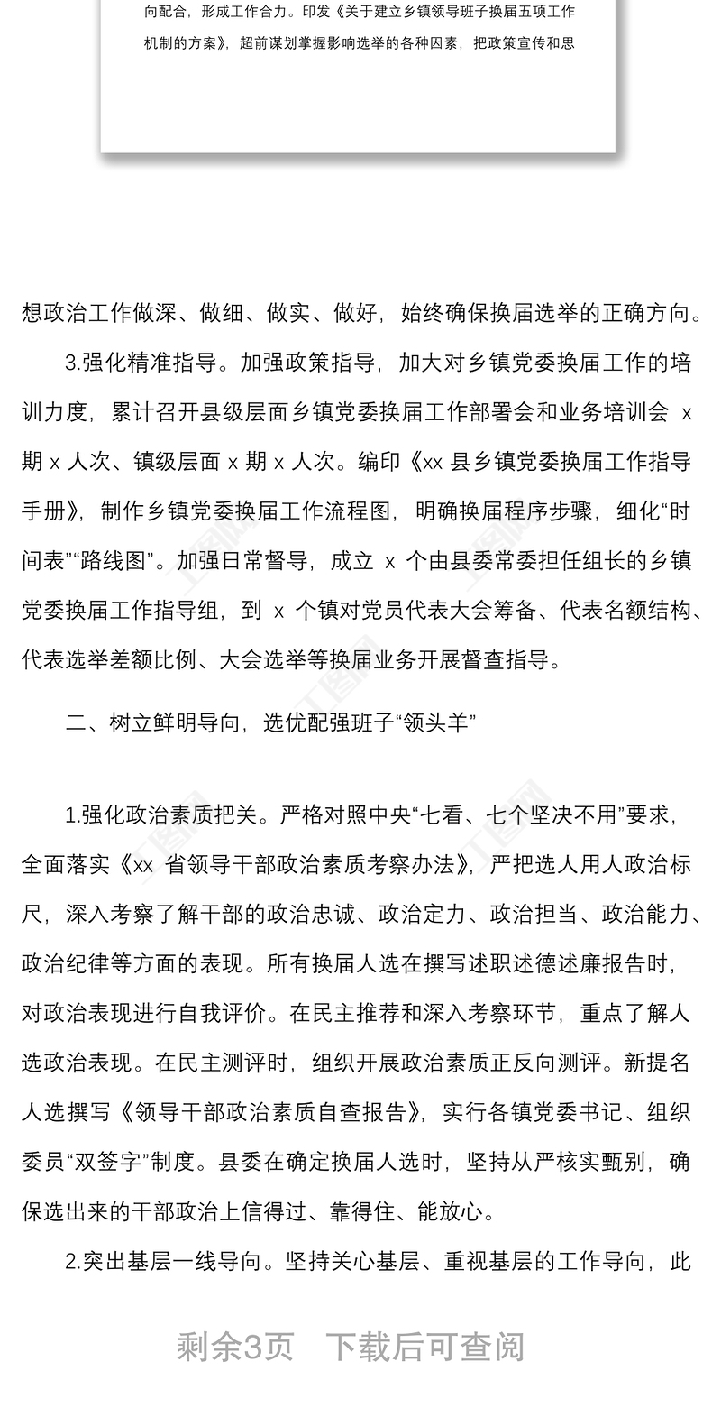 xx縣鄉(xiāng)鎮(zhèn)黨委換屆工作總結(jié)范文換屆選舉工作匯報報告 Array