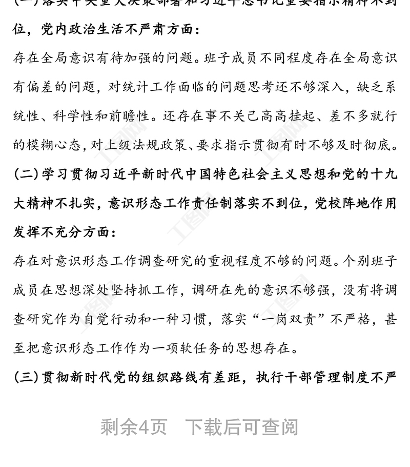 工圖網(wǎng)提供巡視反饋問(wèn)題整改專題民主生活會(huì)對(duì)照檢查材料供會(huì)員免費(fèi)下載。更多精彩黨課PPT素材,盡在工圖網(wǎng)。