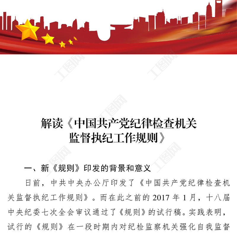 工圖網(wǎng)提供解讀《中國共產(chǎn)黨紀(jì)律檢查機(jī)關(guān)監(jiān)督執(zhí)紀(jì)工作規(guī)則》供會員免費(fèi)下載。更多精彩黨課PPT素材,盡在工圖網(wǎng)。