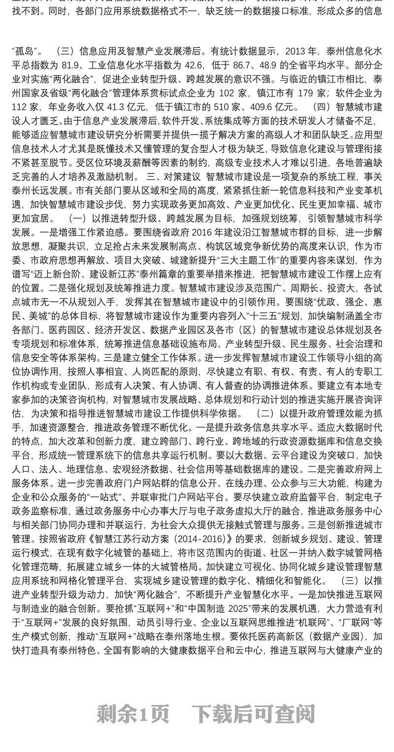 01-加快泰州智慧城市建設(shè)的調(diào)查與思考 Array