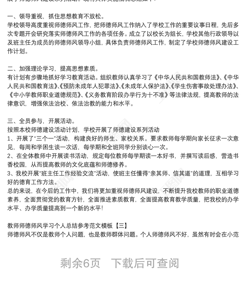 教師師德師風(fēng)學(xué)習(xí)個人總結(jié)參考范文模板