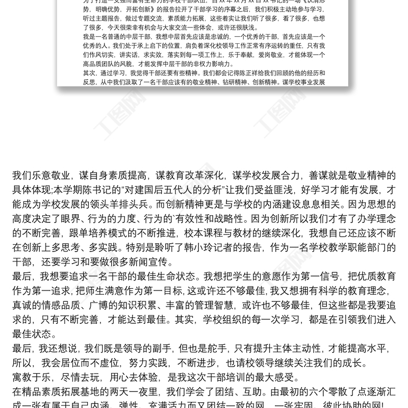 工圖網(wǎng)提供學(xué)校中層干部培訓(xùn)總結(jié)范文供會員免費(fèi)下載。更多精彩黨課PPT素材,盡在工圖網(wǎng)。