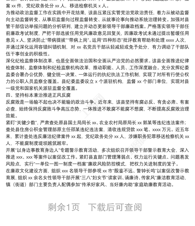 紀(jì)檢監(jiān)察工作五年工作總結(jié)(區(qū)縣)
