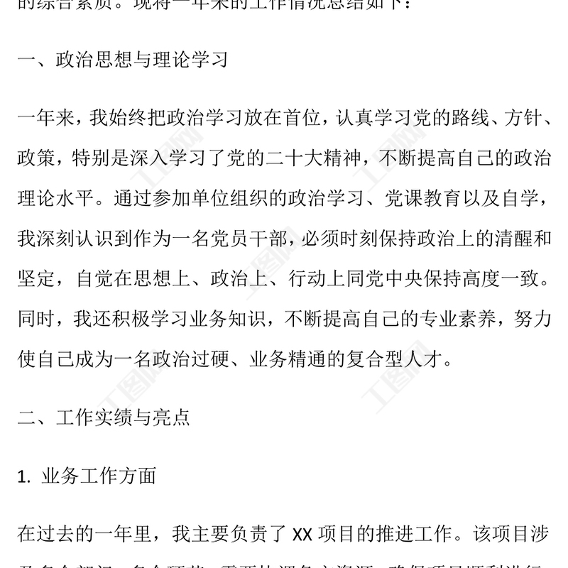 工圖網(wǎng)提供2024年單位干部個人工作總結(jié)范文和企業(yè)個人年終總結(jié)范文2篇供會員免費下載。更多精彩黨課PPT素材,盡在工圖網(wǎng)。