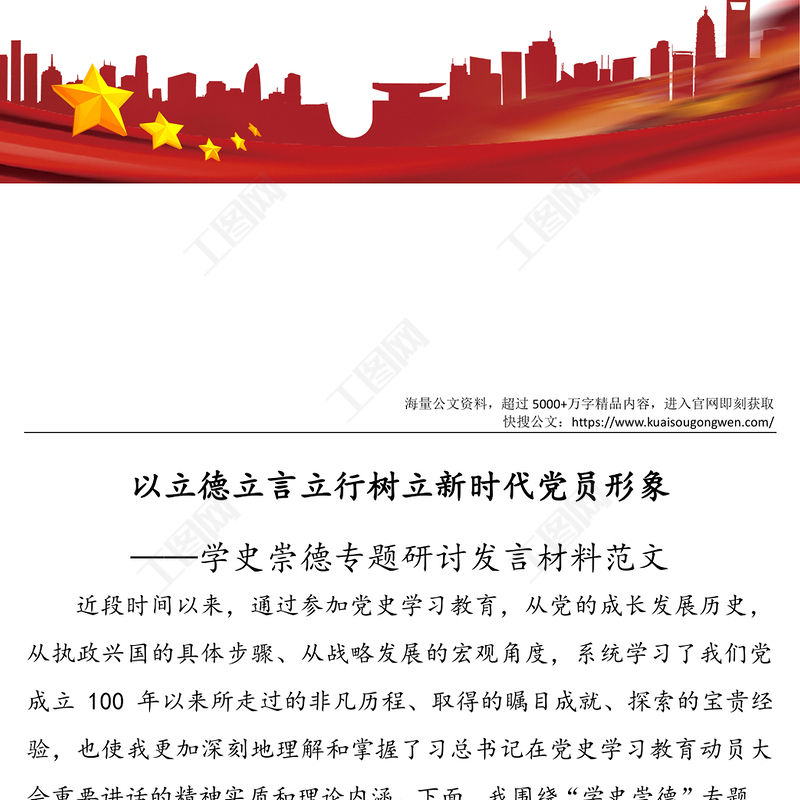 工圖網(wǎng)提供學(xué)史崇德專題研討發(fā)言材料范文以立德立言立行樹立新時(shí)代黨員形象供會(huì)員免費(fèi)下載。更多精彩黨課PPT素材,盡在工圖網(wǎng)。
