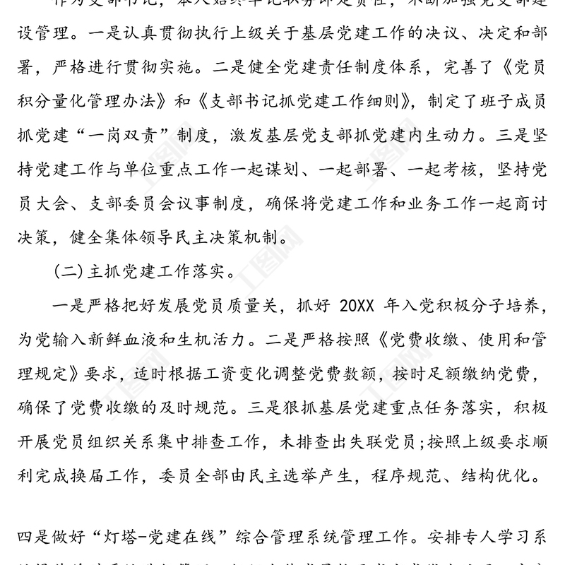 工圖網(wǎng)提供黨支部書記20XX年抓黨建工作述職報告三篇供會員免費下載。更多精彩黨課PPT素材,盡在工圖網(wǎng)。
