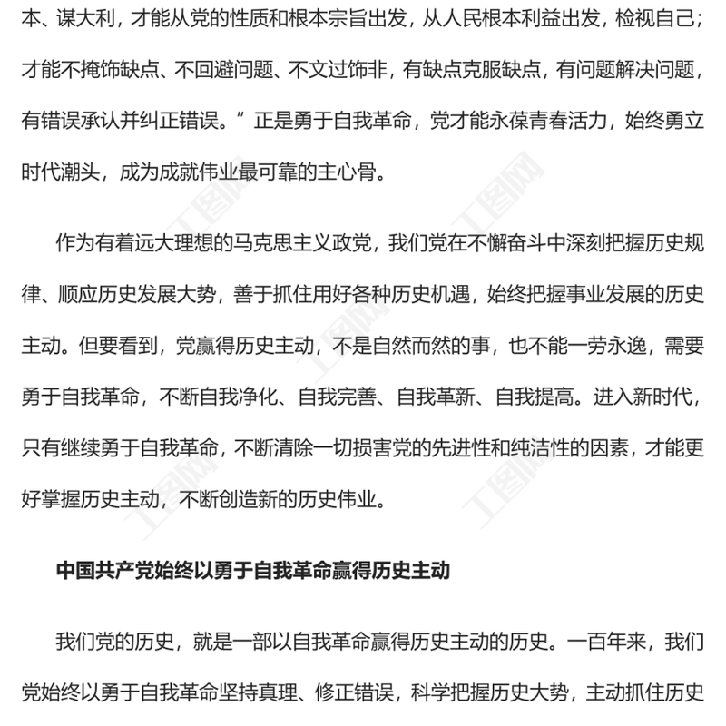 工圖網(wǎng)提供勇于自我革命贏得歷史主動(dòng)黨員干部學(xué)習(xí)教育專題黨課供會(huì)員免費(fèi)下載。更多精彩黨課PPT素材,盡在工圖網(wǎng)。