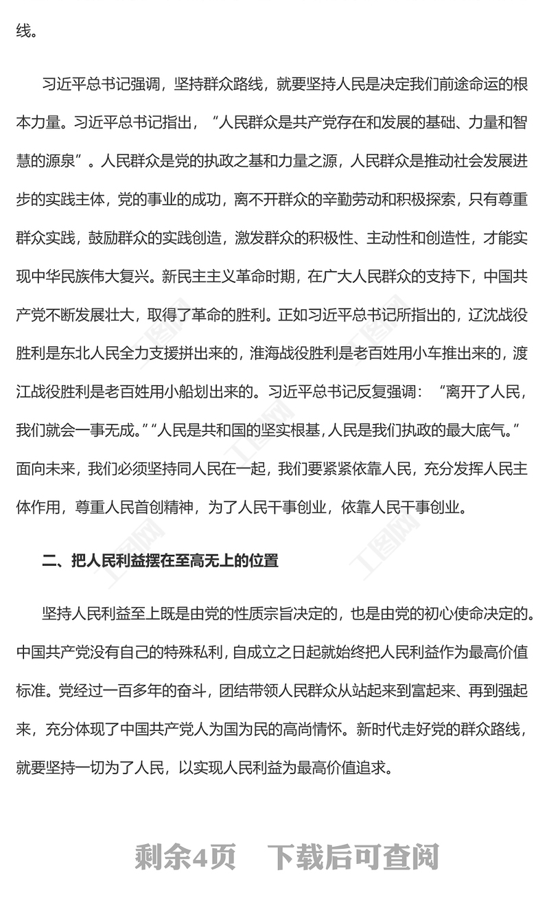 > 黨課講稿 > 2023黨員干部要走好新時代黨的群眾路線PPT大氣精美風(fēng)黨員干部學(xué)習(xí)教育專題黨課課件(講稿).DOCX 【圖片、文字、動畫均可編輯】