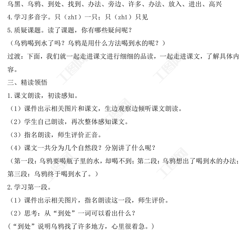 2022烏鴉喝水教案課文第13課小學(xué)一年級語文上冊部編人教版 Array