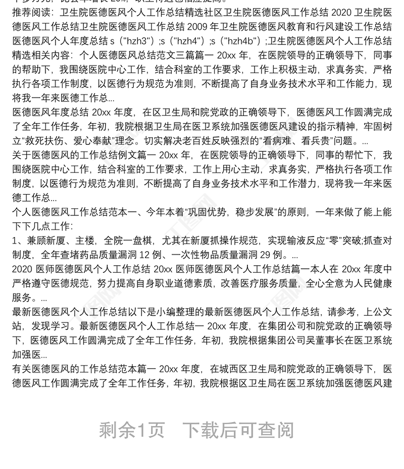 衛(wèi)生院醫(yī)德醫(yī)風個人工作總結精選 Array