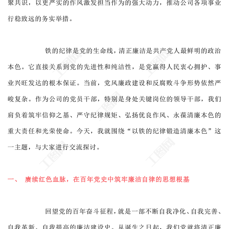 工圖網(wǎng)提供以鐵的紀(jì)律鍛造清廉本色PPT簡(jiǎn)潔大氣國(guó)企廉政主題教育黨課(講稿)供會(huì)員免費(fèi)下載。更多精彩黨課PPT素材,盡在工圖網(wǎng)。