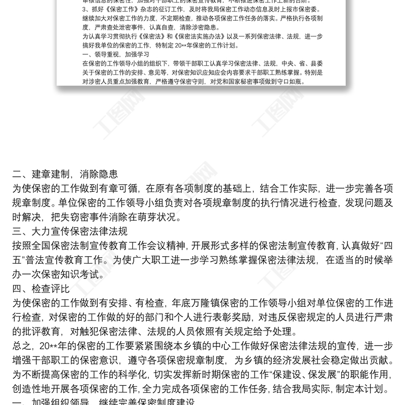 20xx年度保密工作計劃 Array