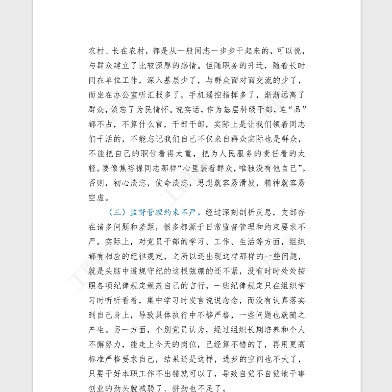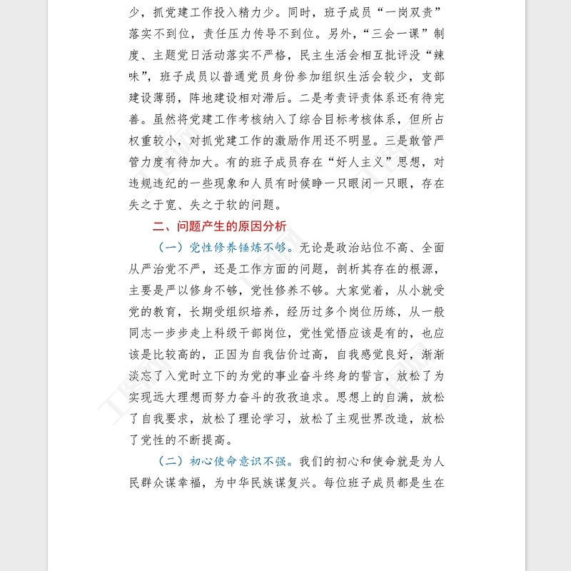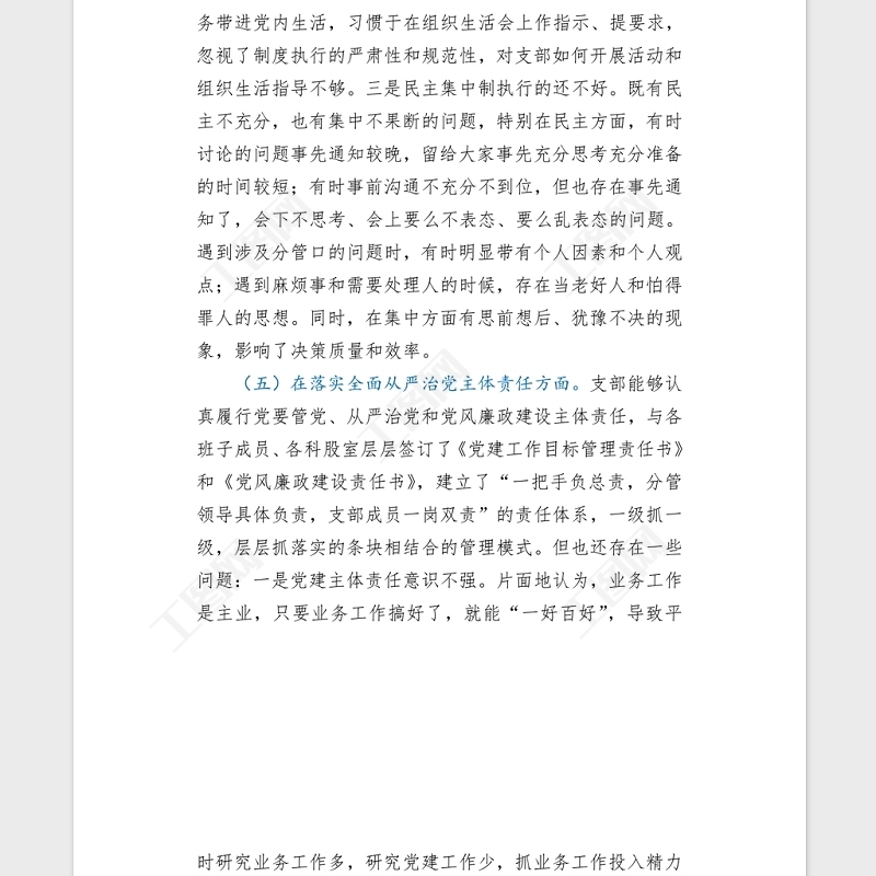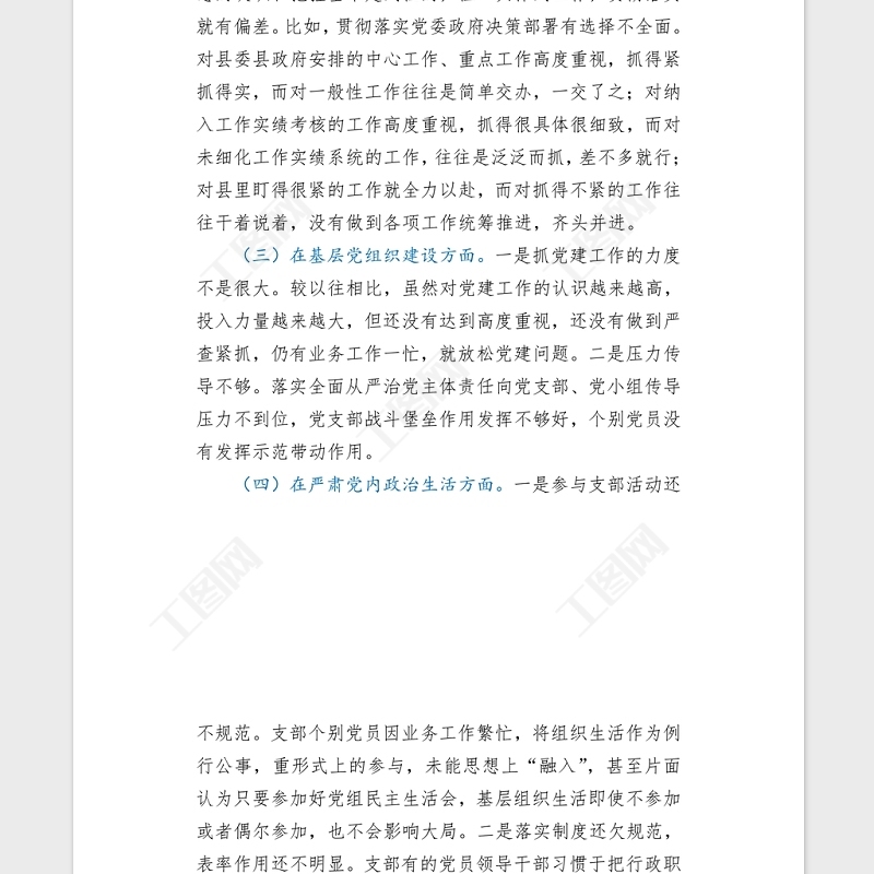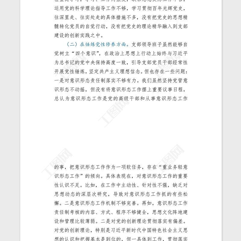 工圖網(wǎng)提供2021年機(jī)關(guān)黨支部黨史專題組織生活會五個方面班子對照檢查word文檔供會員免費(fèi)下載。更多精彩黨課PPT素材,盡在工圖網(wǎng)。