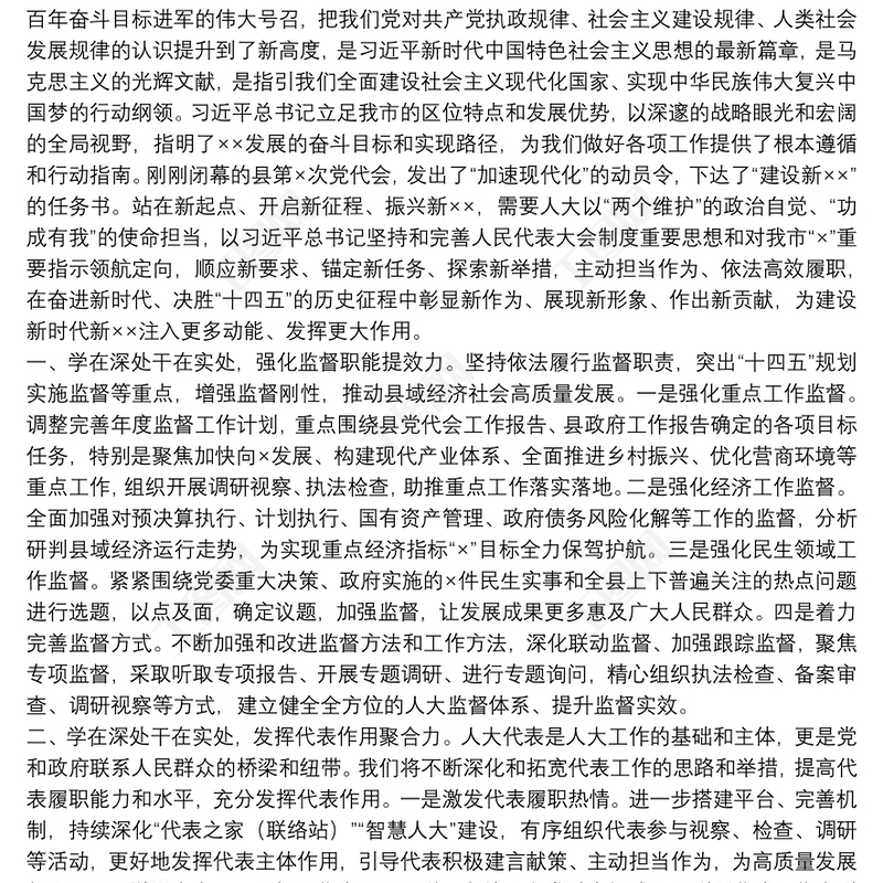 X縣人大常委會主任在縣委理論中心組集中學(xué)習(xí)會議上的交流研討發(fā)言 Array