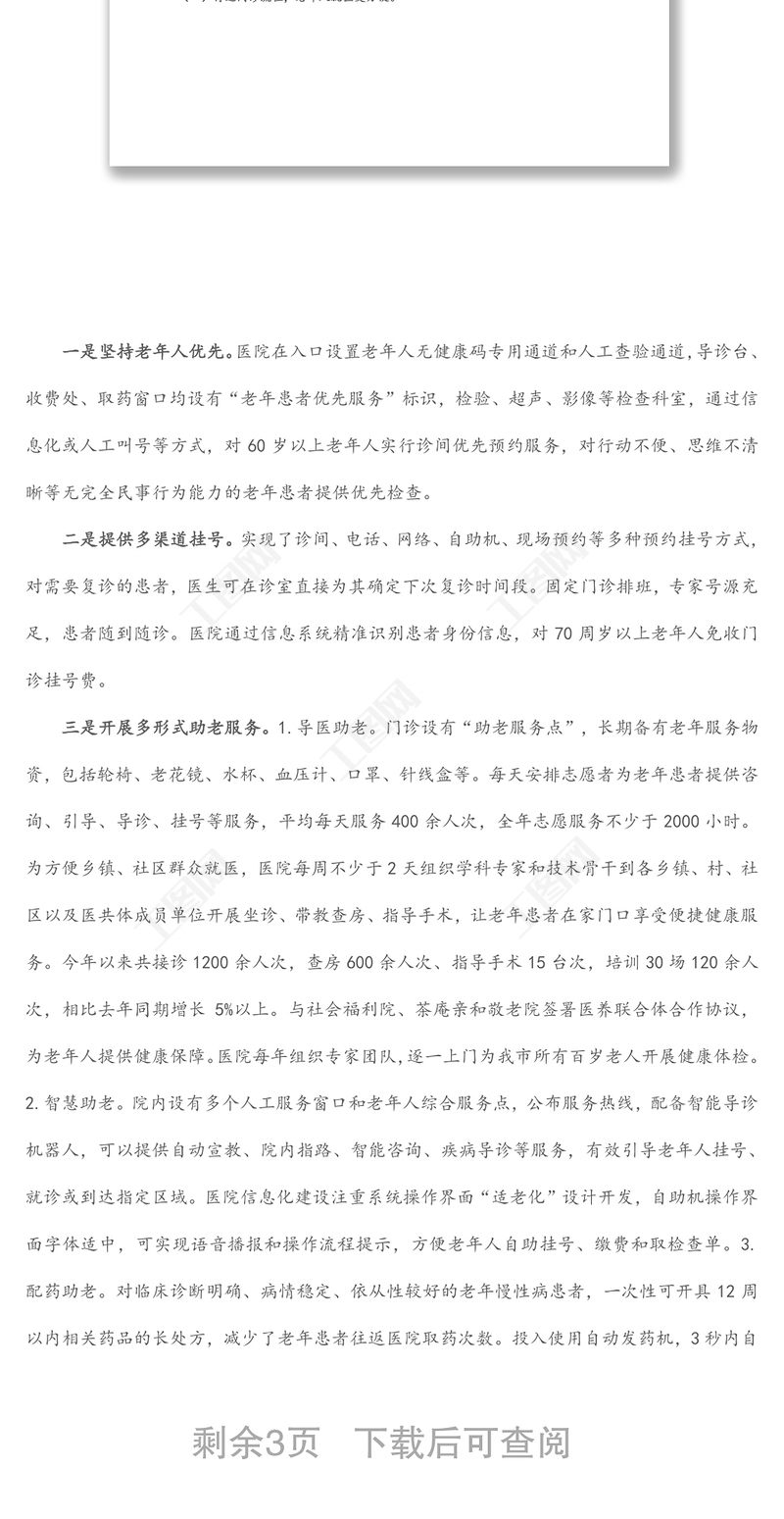 醫(yī)院便利老年人就醫(yī)工作匯報材料