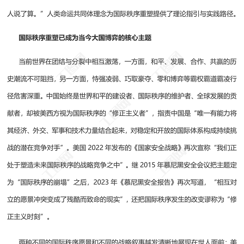 > 黨課講稿 > 2023以“人類命運共同體”理念引領(lǐng)國際秩序重塑PPT大氣精美風(fēng)黨員干部學(xué)習(xí)教育專題黨課課件(講稿).DOCX 【圖片、文字、動畫均可編輯】