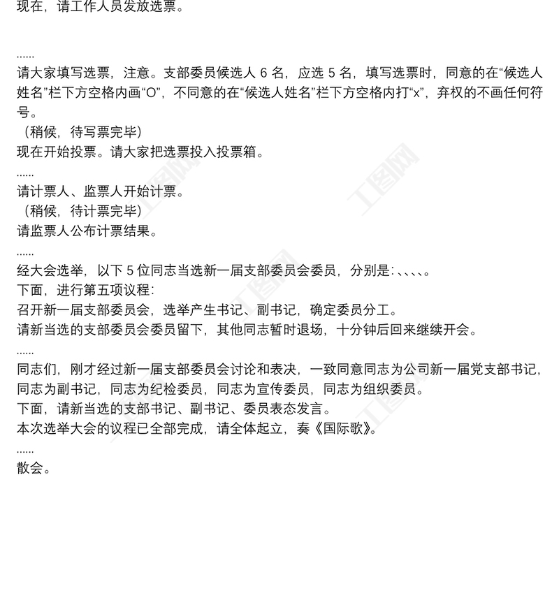 工圖網(wǎng)提供黨支部換屆選舉主持詞供會(huì)員免費(fèi)下載。更多精彩黨課PPT素材,盡在工圖網(wǎng)。
