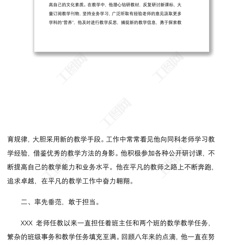 工圖網(wǎng)提供2020最美黨員教師先進事跡材料供會員免費下載。更多精彩黨課PPT素材,盡在工圖網(wǎng)。