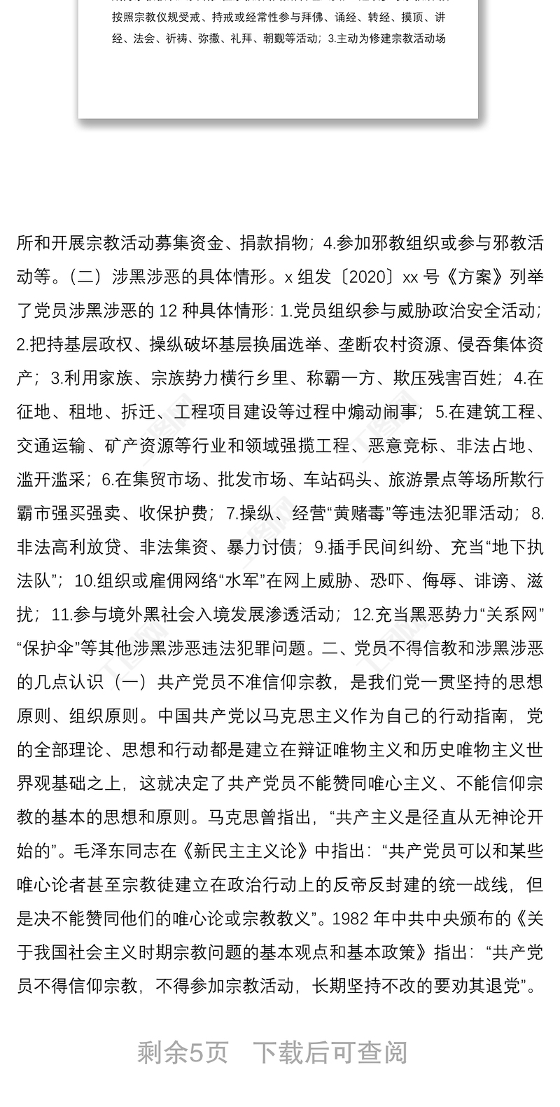 2021黨支部書記關于黨員信教和涉黑涉惡問題專項整治黨課講稿