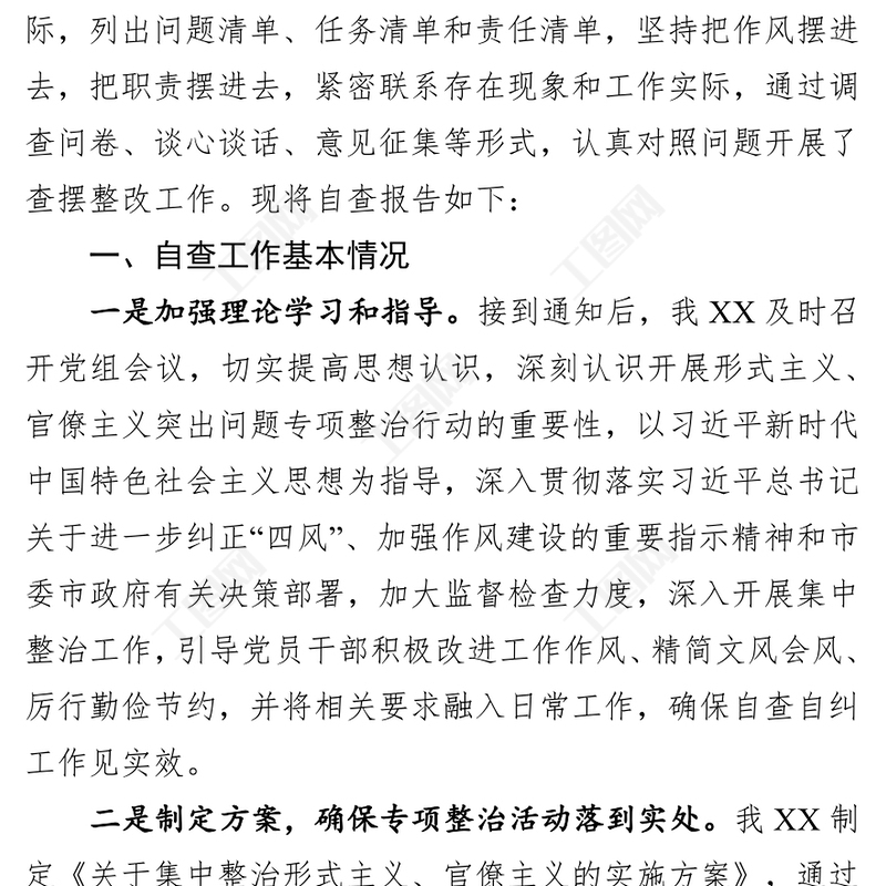 開展形式主義官僚主義問(wèn)題大排查自查報(bào)告包含
