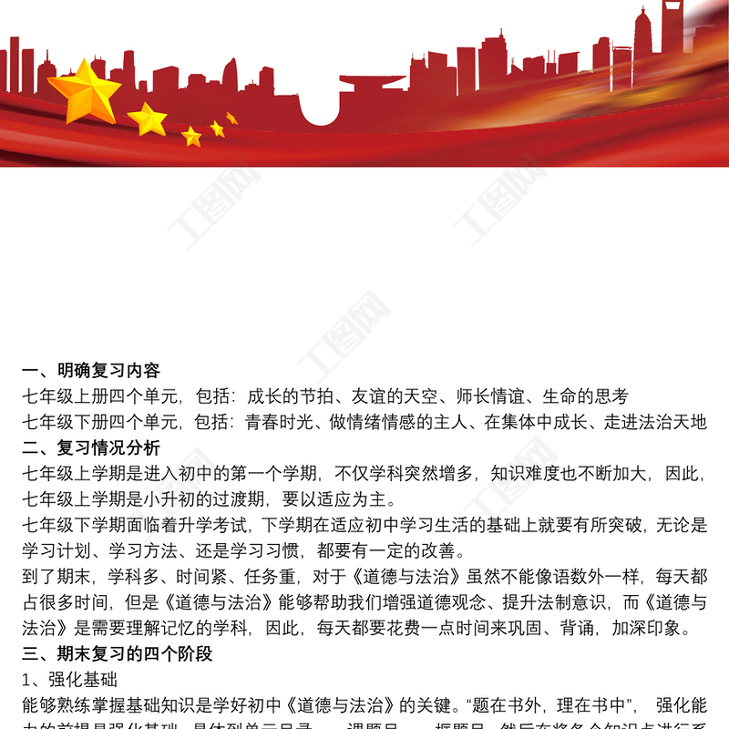 工圖網(wǎng)提供初中道德與法治期末復(fù)習(xí)計劃供會員免費下載。更多精彩黨課PPT素材,盡在工圖網(wǎng)。