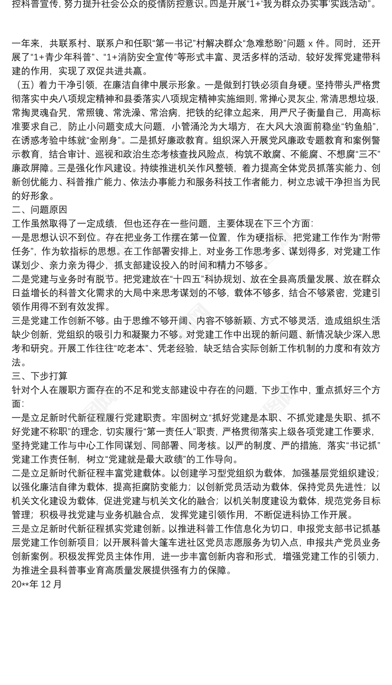 縣科協(xié)黨支部書記2021年度抓基層黨建工作述職報(bào)告 Array