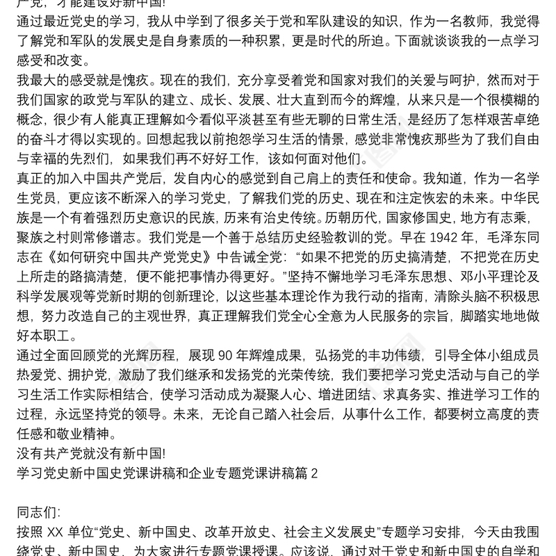 學(xué)習(xí)黨史新中國史黨課講稿和企業(yè)專題黨課講稿4篇