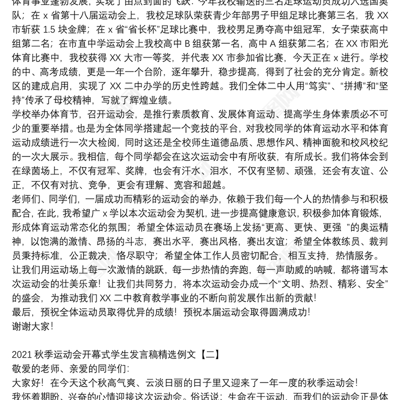 2021秋季運(yùn)動(dòng)會(huì)開幕式學(xué)生發(fā)言稿精選例文 Array