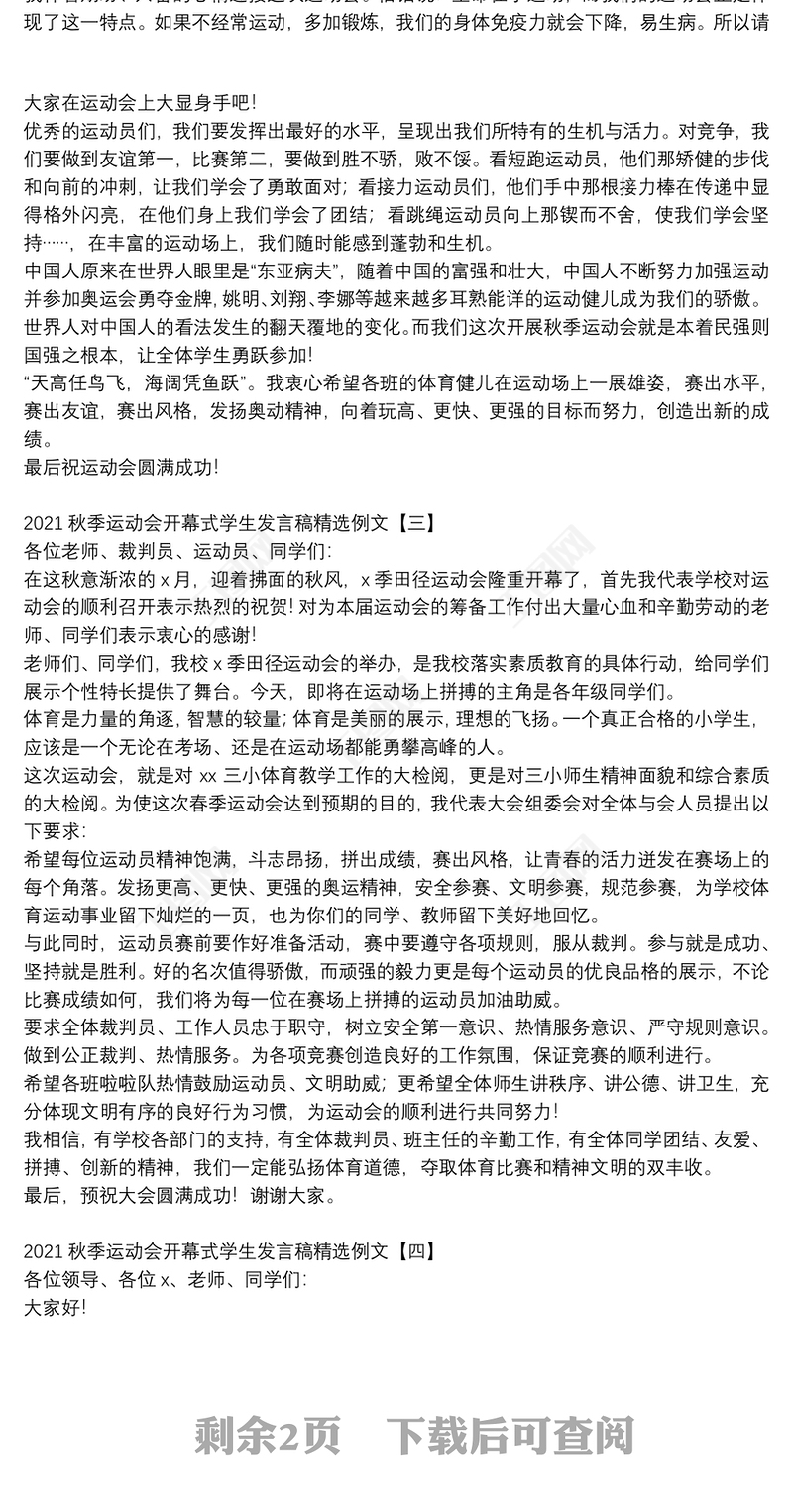 工圖網(wǎng)提供2021秋季運(yùn)動(dòng)會(huì)開幕式學(xué)生發(fā)言稿精選例文供會(huì)員免費(fèi)下載。更多精彩黨課PPT素材,盡在工圖網(wǎng)。