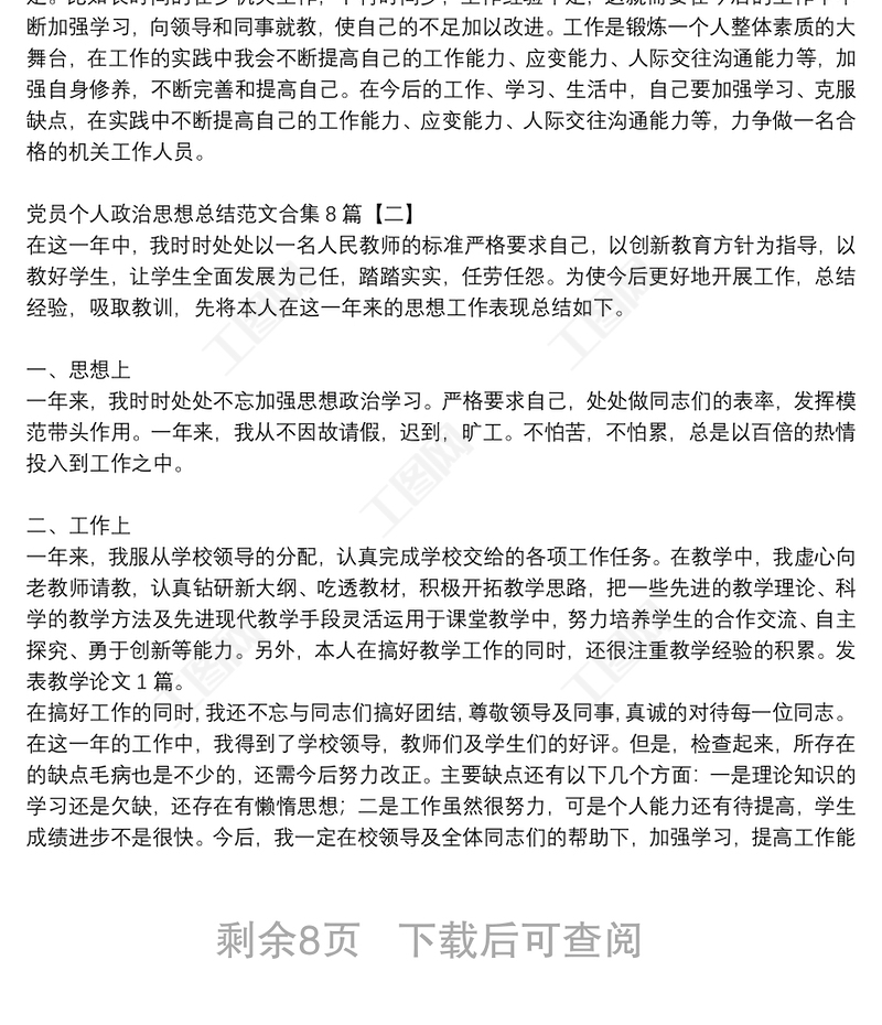 工圖網(wǎng)提供黨員個人政治思想總結(jié)范文合集8篇供會員免費下載。更多精彩黨課PPT素材,盡在工圖網(wǎng)。