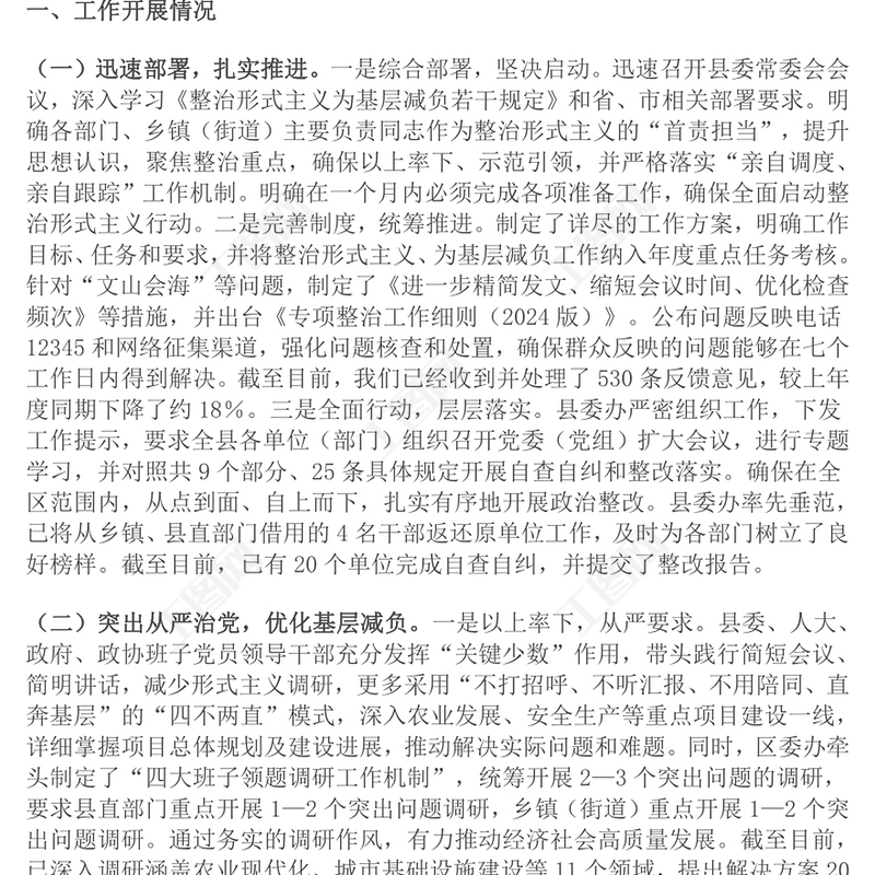 工圖網(wǎng)提供整治形式主義為基層減負(fù)工作開(kāi)展情況匯報(bào)范文供會(huì)員免費(fèi)下載。更多精彩黨課PPT素材,盡在工圖網(wǎng)。