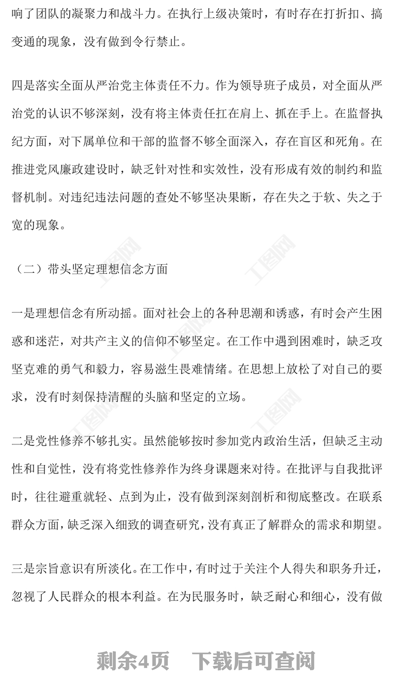 工圖網(wǎng)提供2024年度民主生活會(huì)個(gè)人(領(lǐng)導(dǎo))對(duì)照檢查材料下載供會(huì)員免費(fèi)下載。更多精彩黨課PPT素材,盡在工圖網(wǎng)。