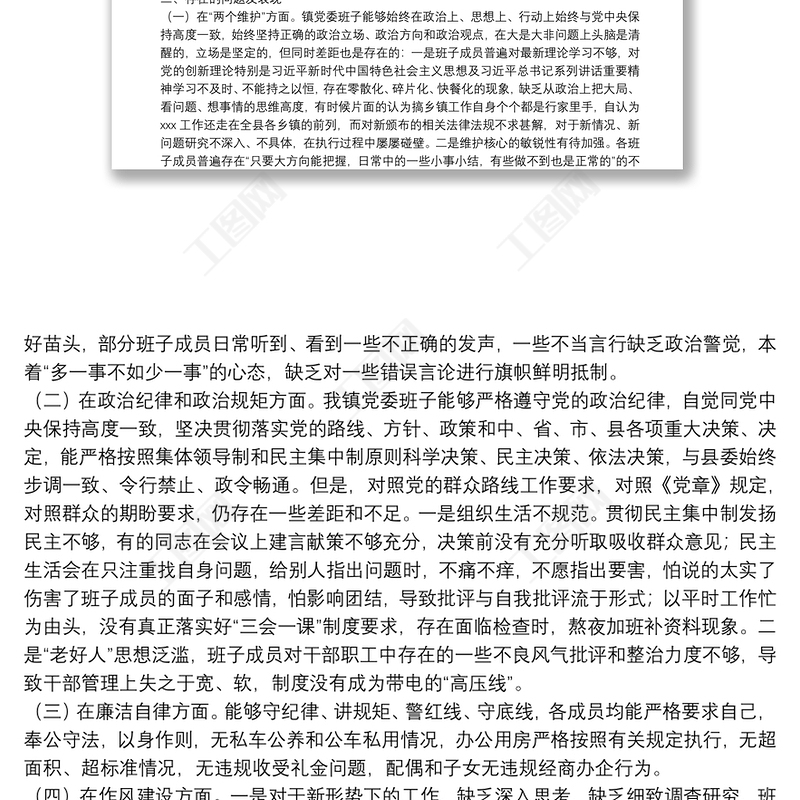 工圖網(wǎng)提供鄉(xiāng)鎮(zhèn)黨委班子XX嚴(yán)重違紀(jì)違法案以案促改專題民主生活會檢視剖析材料供會員免費(fèi)下載。更多精彩黨課PPT素材,盡在工圖網(wǎng)。