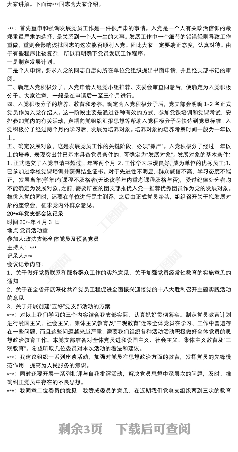 工圖網(wǎng)提供20xx年黨支部會(huì)議記錄精選7篇供會(huì)員免費(fèi)下載。更多精彩黨課PPT素材,盡在工圖網(wǎng)。