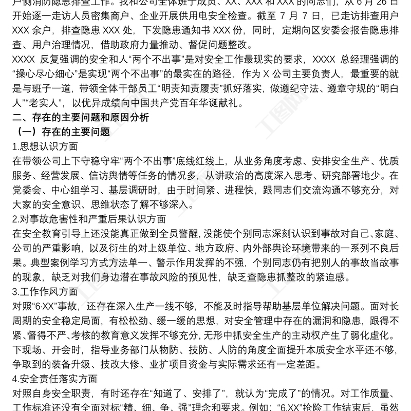 工圖網(wǎng)提供20xx年召開公司安全生產專題民主生活會個人對照檢查材料范文供會員免費下載。更多精彩黨課PPT素材,盡在工圖網(wǎng)。