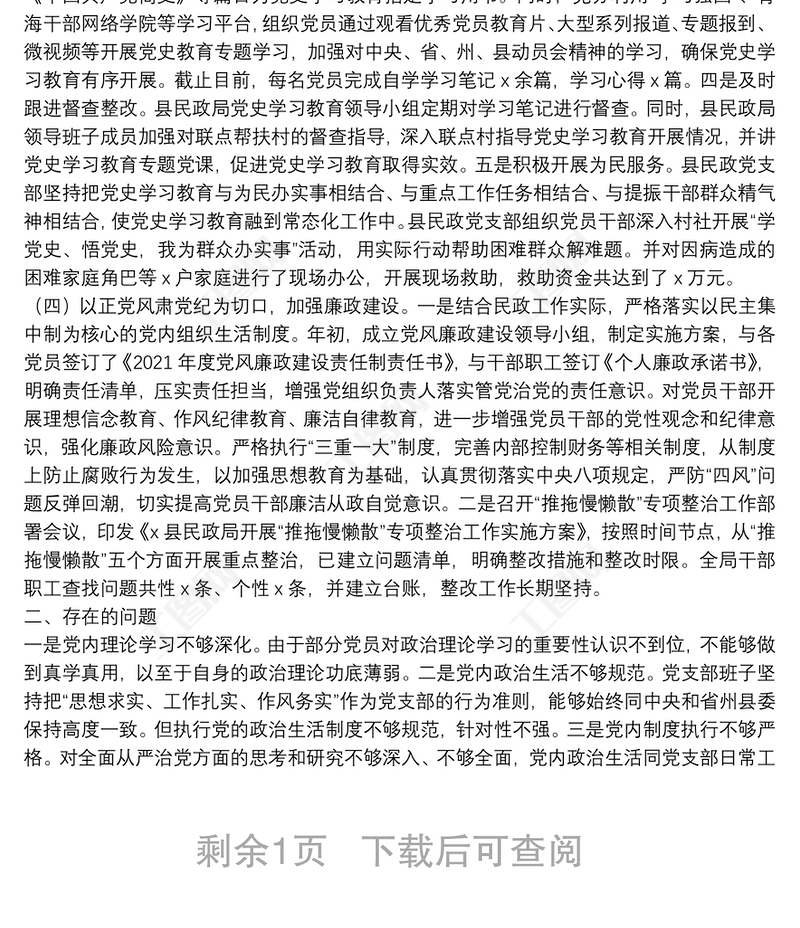 縣民政黨支部2021年度黨建工作總結(jié)