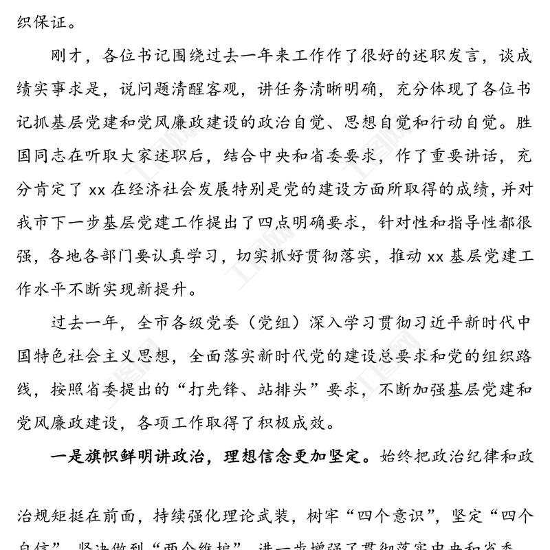 工圖網(wǎng)提供提高政治站位 強化責任擔當 全面提升基層黨組織建設整體水平——落實全面從嚴治黨主體責任述職評議會上的講話供會員免費下載。更多精彩黨課PPT素材,盡在工圖網(wǎng)。