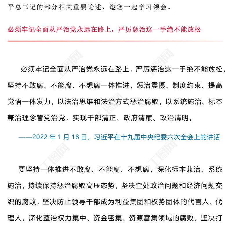工圖網(wǎng)提供2025堅(jiān)持以嚴(yán)的基調(diào)強(qiáng)化正風(fēng)肅紀(jì)PPT總書記部分相關(guān)重要論述課件(講稿)供會(huì)員免費(fèi)下載。更多精彩黨課PPT素材,盡在工圖網(wǎng)。
