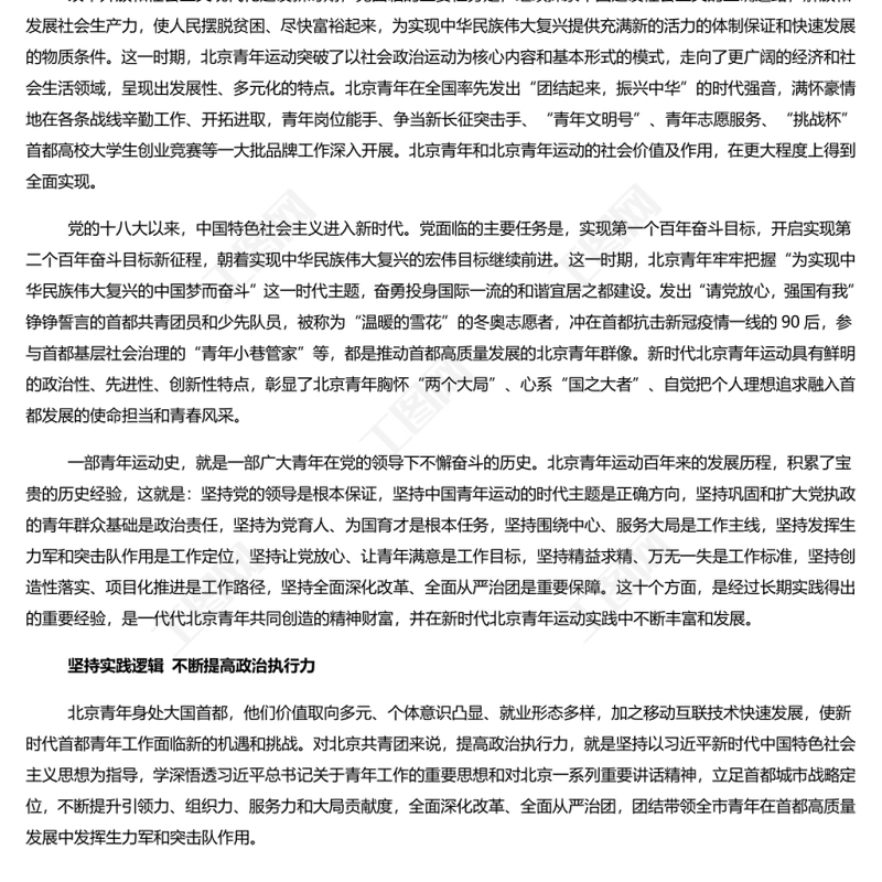 > 黨課講稿 > 書寫黨領(lǐng)導(dǎo)青年運(yùn)動的北京篇章 團(tuán)員干部學(xué)習(xí)教育專題團(tuán)課演講稿.DOCX 【圖片、文字、動畫均可編輯】