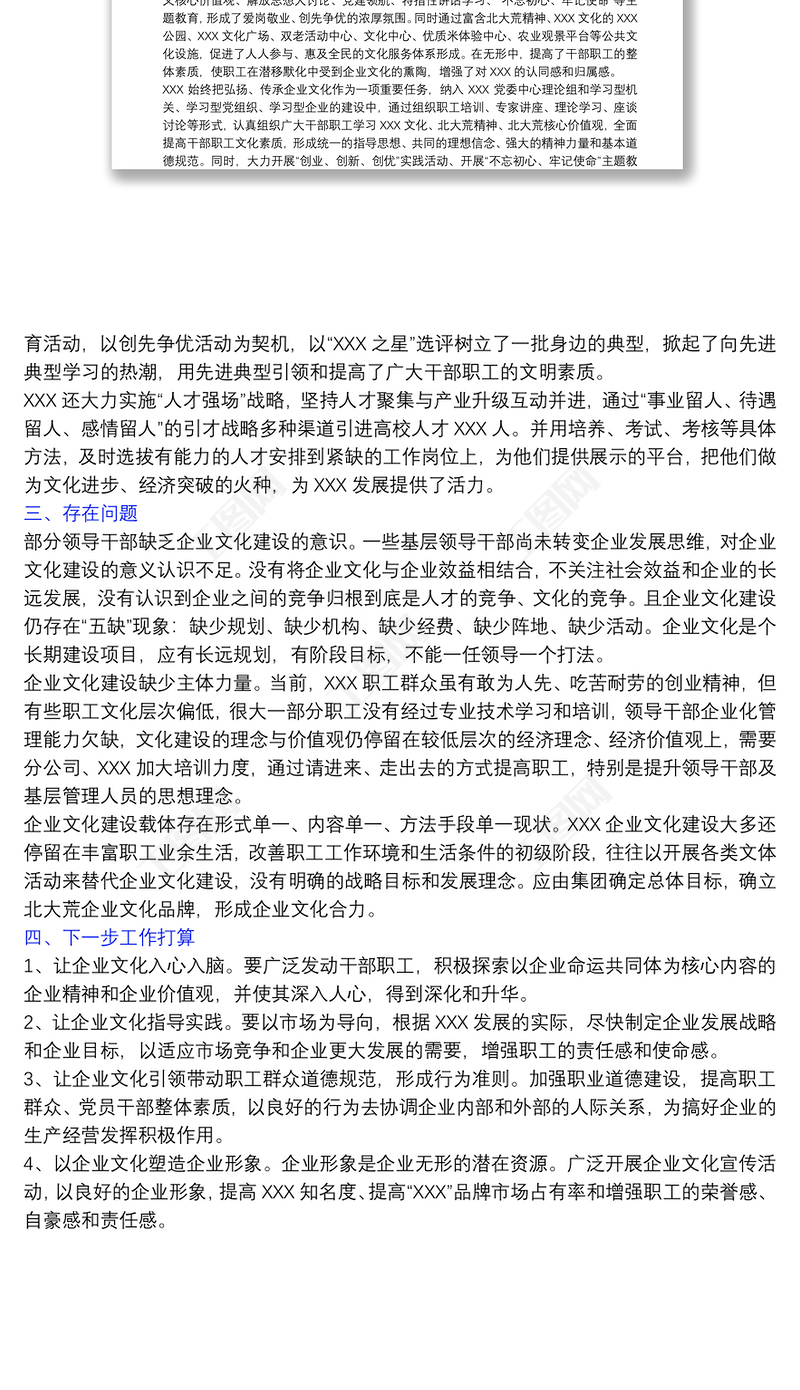 XX企業(yè)文化建設(shè)情況工作報告 Array