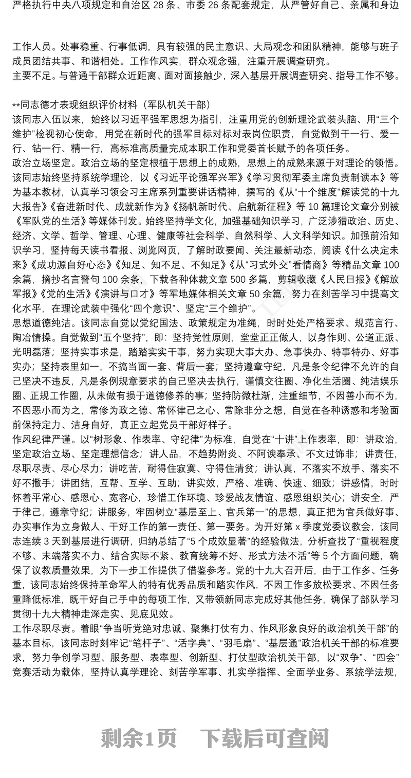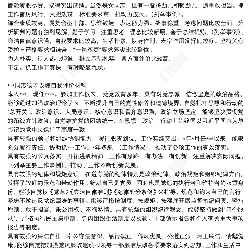 德才表現(xiàn)組織評價+自我評價