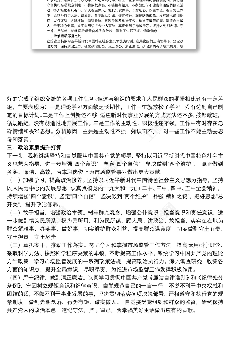 20xx年關(guān)于干部個(gè)人政治素質(zhì)自評(píng)材料報(bào)告范文