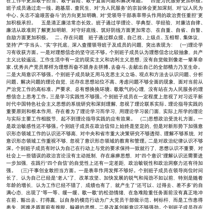 主題教育專題民主生活會班子檢視剖析材料 Array